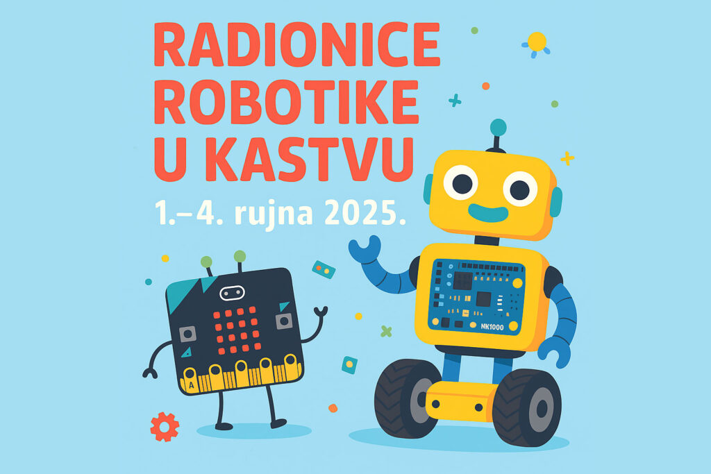 Udruga E-Kastav poziva učenike od 5. do 8. razreda osnovne škole na besplatne radionice robotike koje će se održavati od 1. do 4. rujna 2025. u inoLAB-u (Stražnica 2, Kastav).
